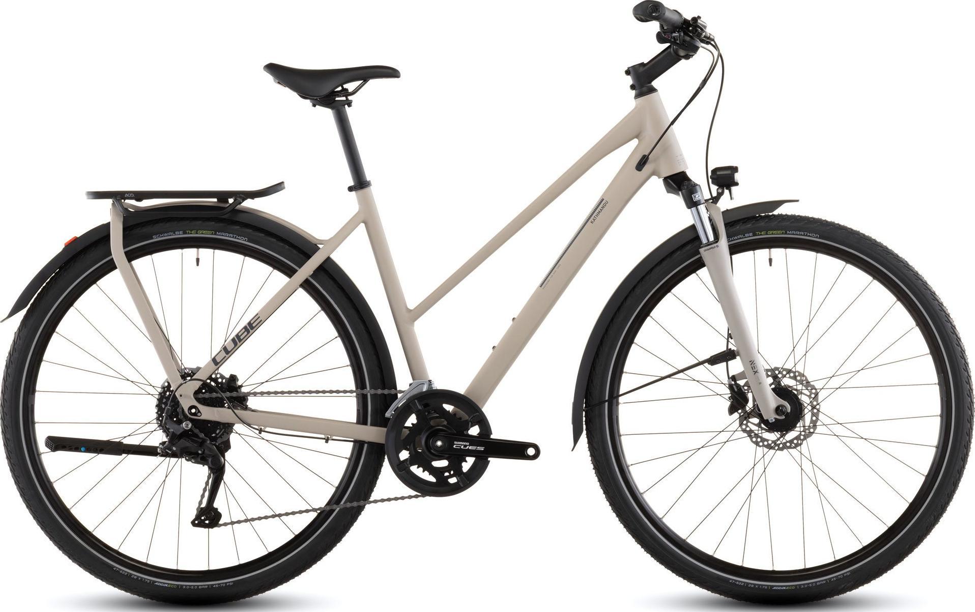 Das Cube Kathmandu ONE Trapeze 2026 ist der ideale Begleiter für alle, die auf der Suche nach einem vielseitigen Trekkingbike sind. Mit seinem leichten Aluminium Superlite Rahmen bietet es nicht nur Stabilität, sondern auch eine komfortable Geometrie, die auf lange Touren ausgelegt ist. Die trapezförmige Rahmengestaltung sorgt für einen niedrigen Einstieg, wodurch das Auf- und Absteigen besonders einfach ist. Dies ist besonders vorteilhaft, wenn man in der Stadt unterwegs ist oder unebenes Gelände bewältigen möchte.